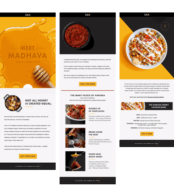 As the Art Director and Interim Creative Director for the national brand, the CAVA creative vision and brand guidelines evolved significantly with each campaign. The brand embraced an impactful and artful look to help tell its story in a more visual way.